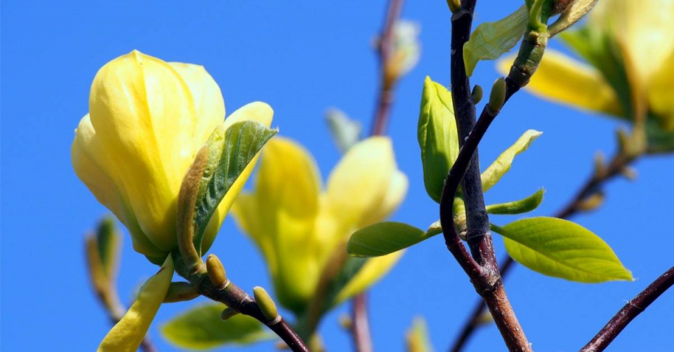 Šácholan (Magnolia) odrůdy ‘Butterflies’ kvete časně, ještě před vyrašením listů.