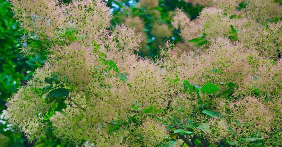 Ruje (Cotinus) dosahují výšky až 3 m a od května až do června nesou světle růžové laty květů. Zřetelně nižší je kultivar ’Smokey Joe’ s výrazně růžovými květy a nápadným podzimním zbarvením. Nízké zůstávají také kultivary ’Lilla’ (s červeným listím) a ’Young Lady’ (zelené listy a bílorůžové květní laty, na fotce).