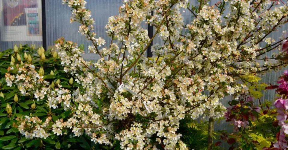Okrasná jabloň ’Tina’, vysoká 1–1,5 m, ukazuje v nádobách, ale také v nízkých živých plotech to nejhezčí: červené pupeny, sněhobílé květy a malé červené plody, které potěší především ptáky.