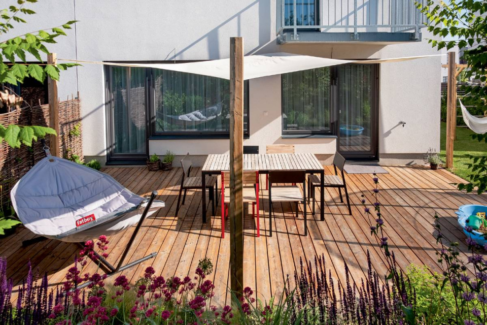 Na terase si můžete sednout, lehnout nebo se dát do výroby bábovek... jak je libo.