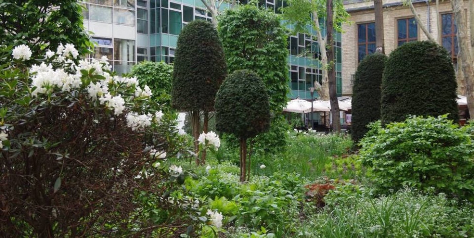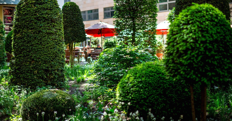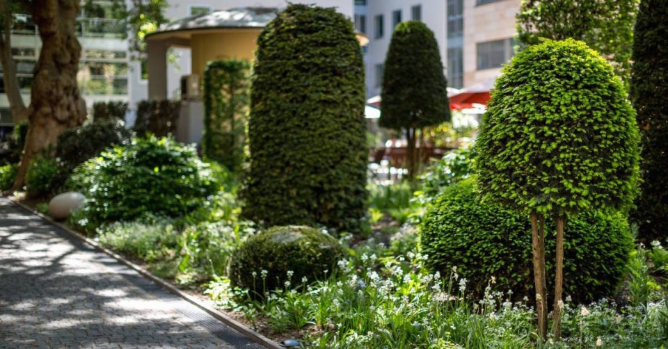 Barokní tvary stříhaných dřevin odkazují na původ bývalé zahrady.