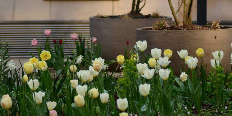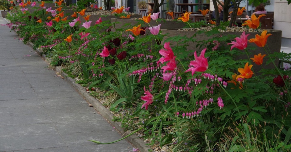 Výsadbu tulipánů doplňují v pokročilém jarním období i srdcovky.