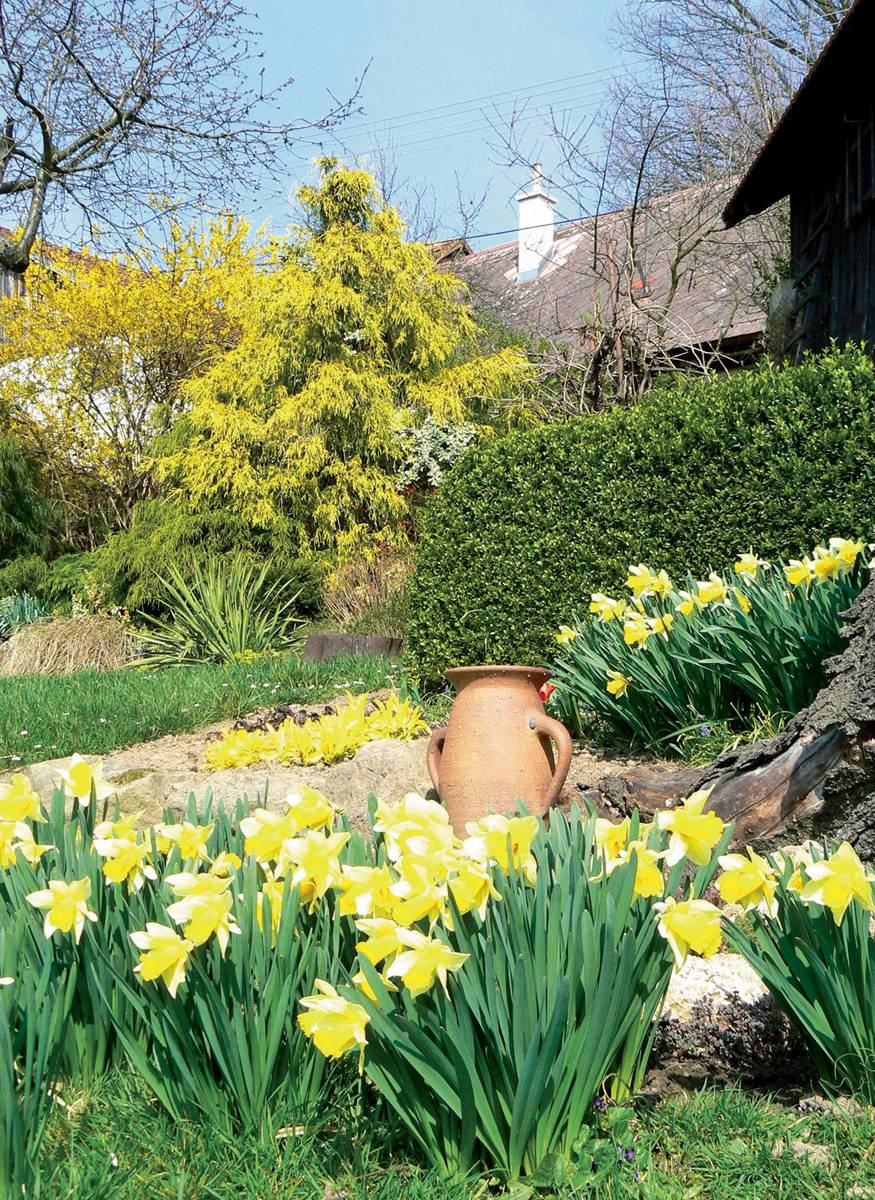 Loučka pod ořešákem, která je zjara plná žlutých květů narcisů, se utěšeně rozrůstá.