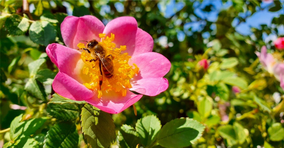 Pro včely a další hmyz mají význam jen botanické růže nebo odrůdy s jednoduchými květy. V plných květech se k nektaru a pylu nedostanou.