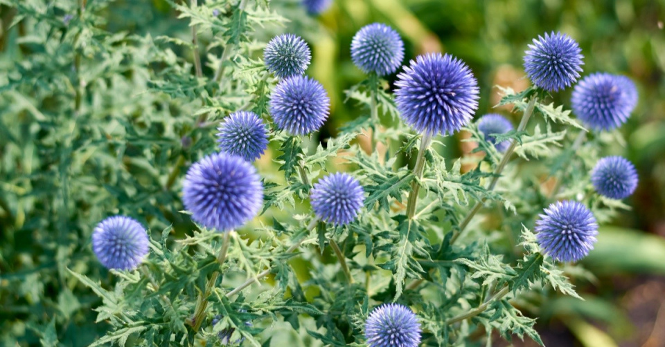 Bělotrn (Echinops), bodlák, který rozkvétá v druhé polovině léta, je zdrojem pylu i nektaru.