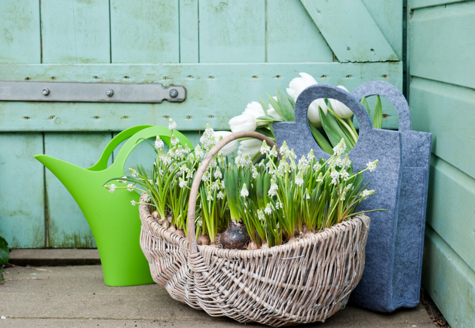 Dalším vhodným materiálem je proutí v jakékoli podobě. Koše a košíky však před vysazením cibulovin vystelte plastovou fólií, aby je vlhkost trvale nepoškodila.