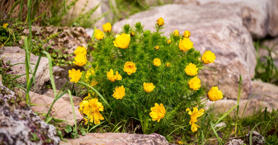 Světle žluté květy hlaváčku jarního (Adonis vernalis, na fotce) se objevují od dubna. Příbuzný hlaváček amurský (A. amurensis) kvete dokonce už od února.