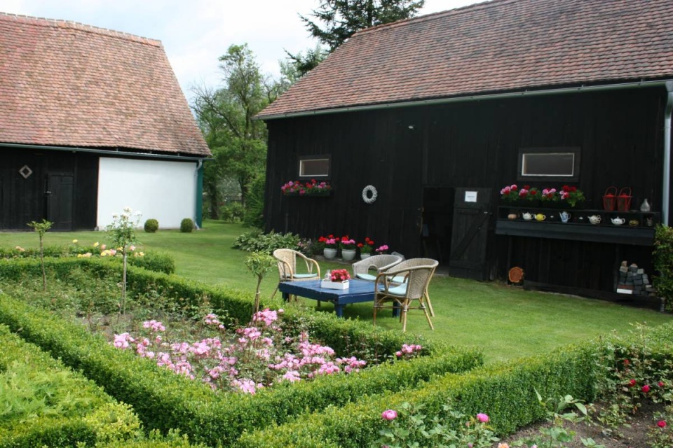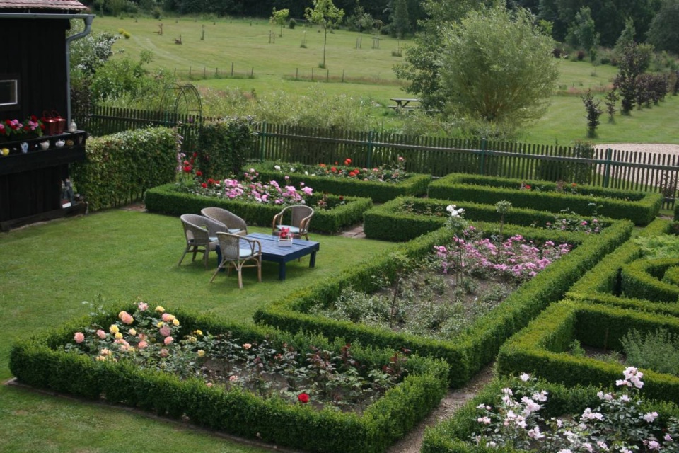 Pozemek zahrady je rozdělen do dvanácti tematických zahrádek. Jednou z nich je anglická.