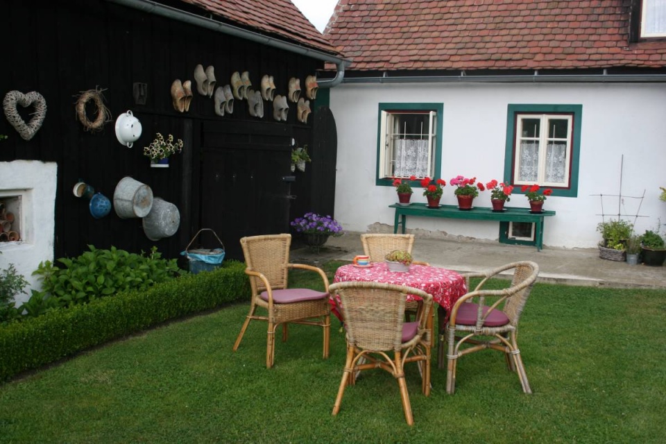 Původ majitelů prozrazují dřeváky upevněné na stěnu domu.