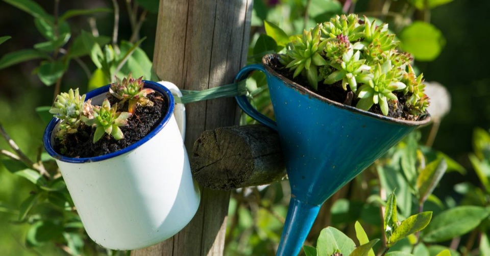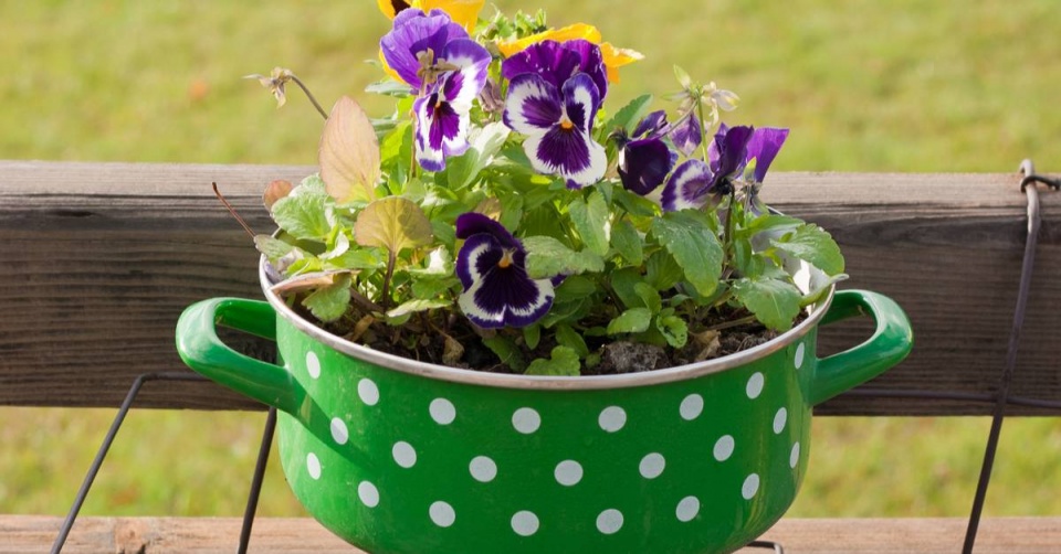 Jako první se k osázení nabízí vyřazené kuchyňské nádobí.