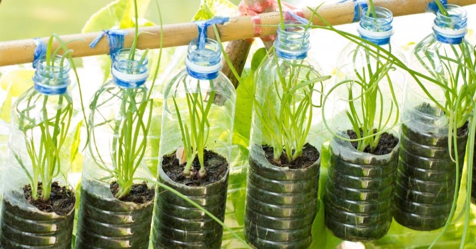Prázdné PET láhve lze v zahradě využít na mnoho způsobů.