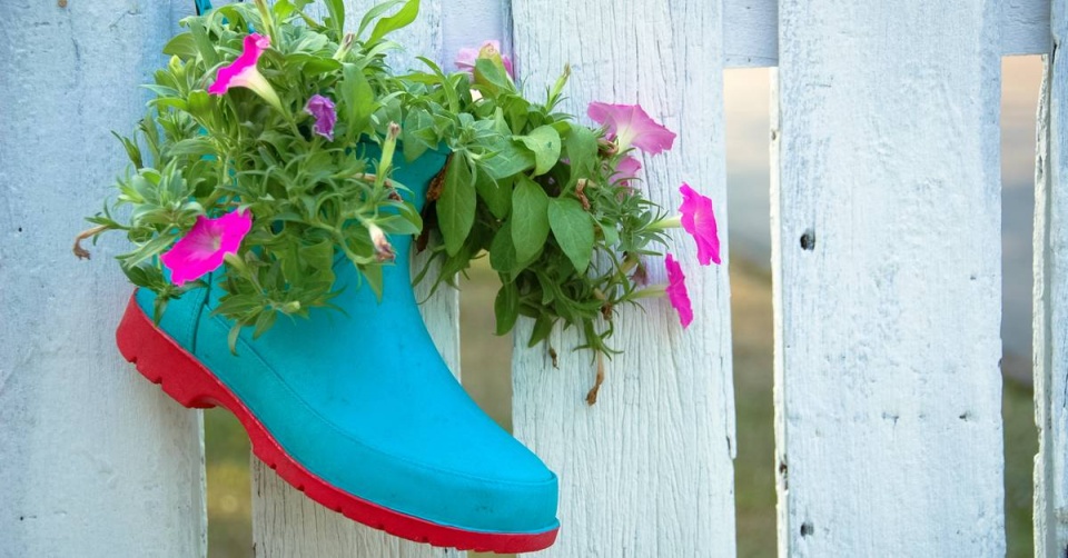 Často jsou k vidění i osázené boty. Pozor, holinky potřebují odtokový otvor!