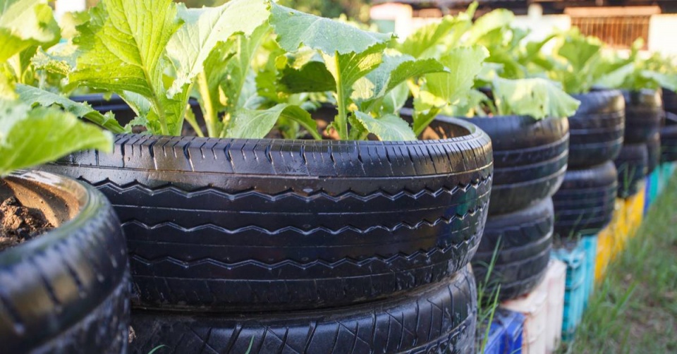 Z vyřazené pneumatiky může být jednoduchá houpačka, malé jezírko i záhonek.