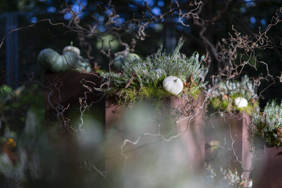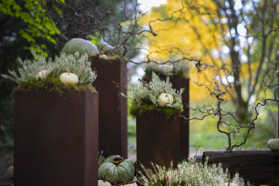 Dýně využívají floristé také v moderních aranžích spojených například s cortenem.