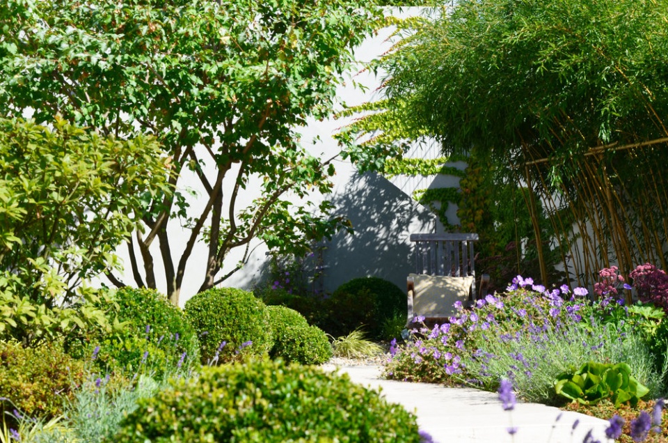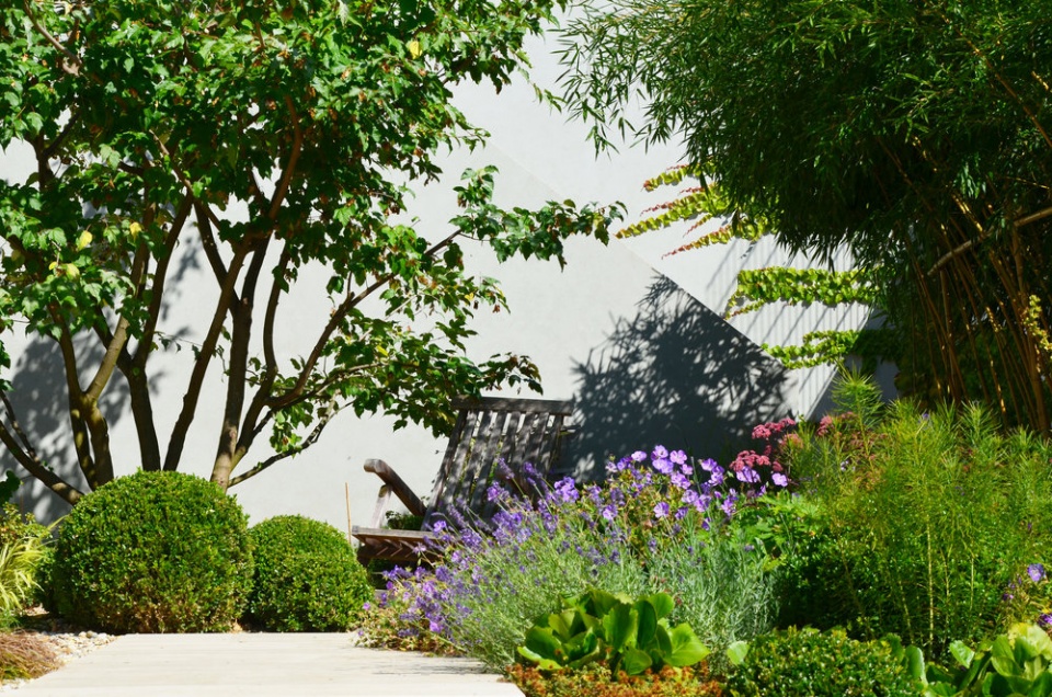 „Nutno podotknouti, že pan majitel je vášnivým milovníkem květin. Také proto je jedna část v podobě záhonu vymezena kvetoucím trvalkám, které zde kvetou v různých obdobích vegetační sezony. Škoda jen, že místa není víc, obzvláště když kvetoucí druhy musely v návrhu trochu ustoupit stálezeleným druhům,” říká zahradní architekt.