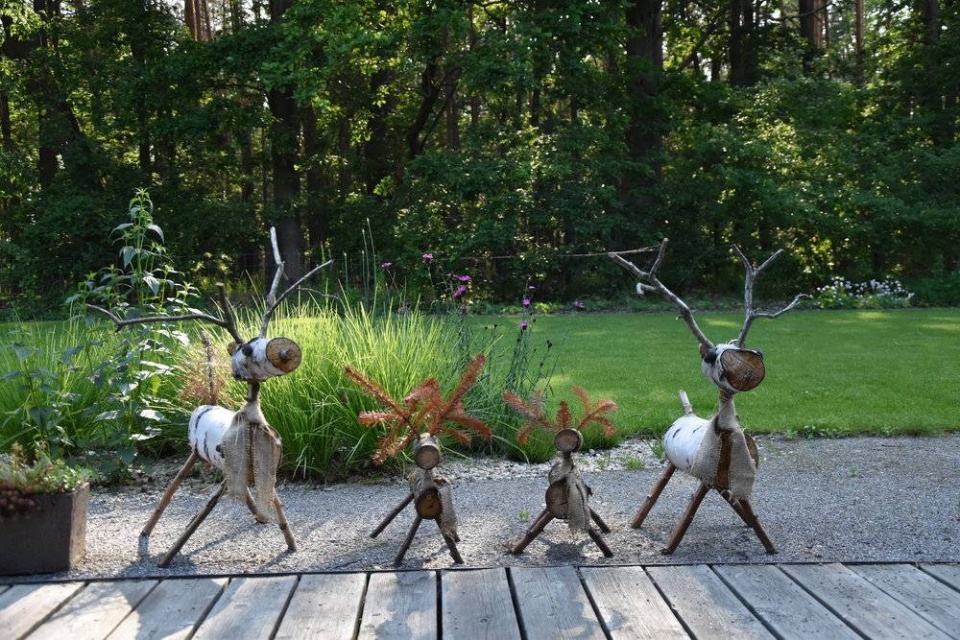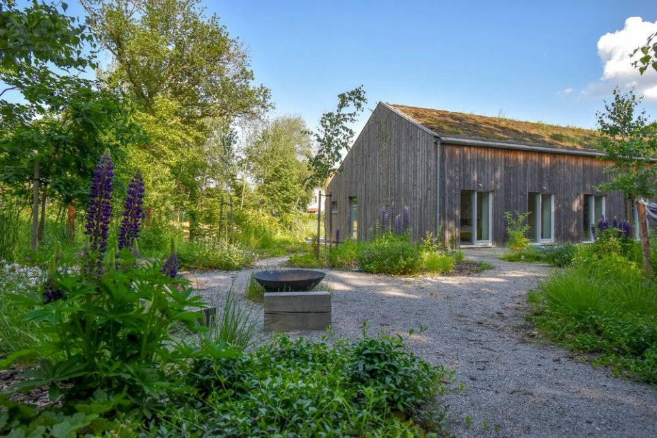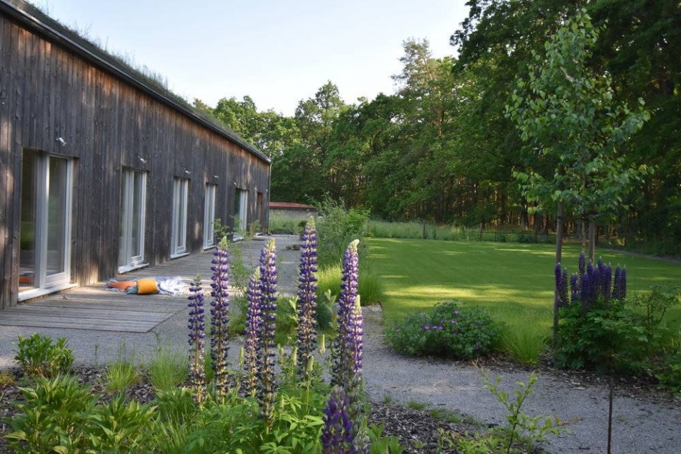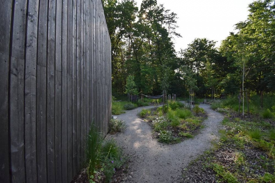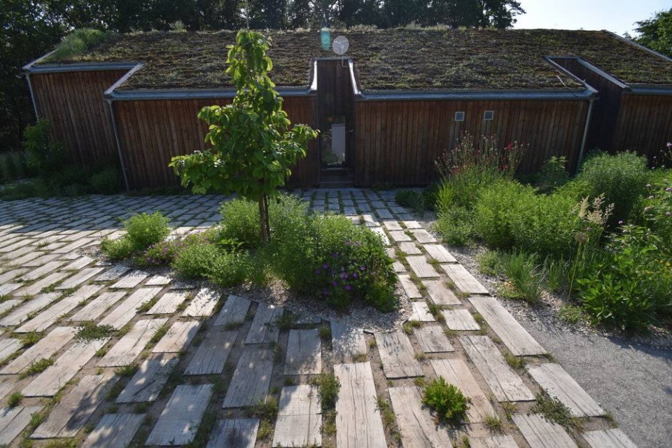 Obyvatelé domu mají opravdu intenzivní kontakt s okolní zelení – všechno bzučí, vrní a zpívá v jejich bezprostřední blízkosti. „Všude najdete skrýše, čmeláčí a hmyzí hotely, kočičí domky či ježčí hromady. V zahradě jsou všichni příchozí živí tvorové zkrátka vítáni,” popisuje architekt.