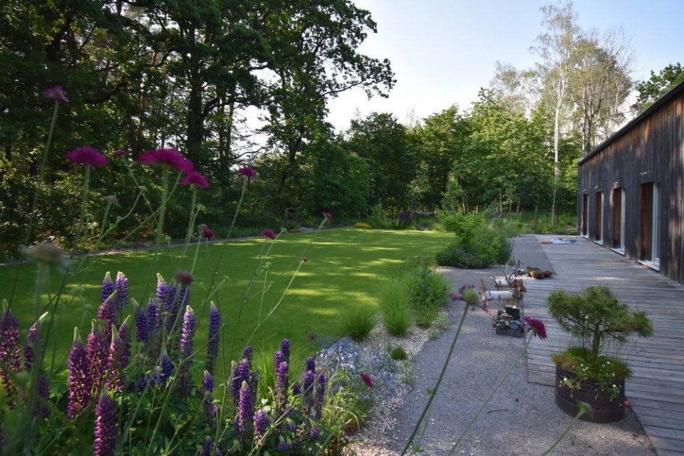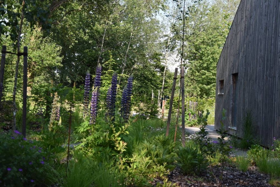 Druhovou pestrost podporuje i samotná poloha domu. Předzahrádka je slunná, plná květin, zatímco ostatní partie jsou inspirovány lesními podrosty.
