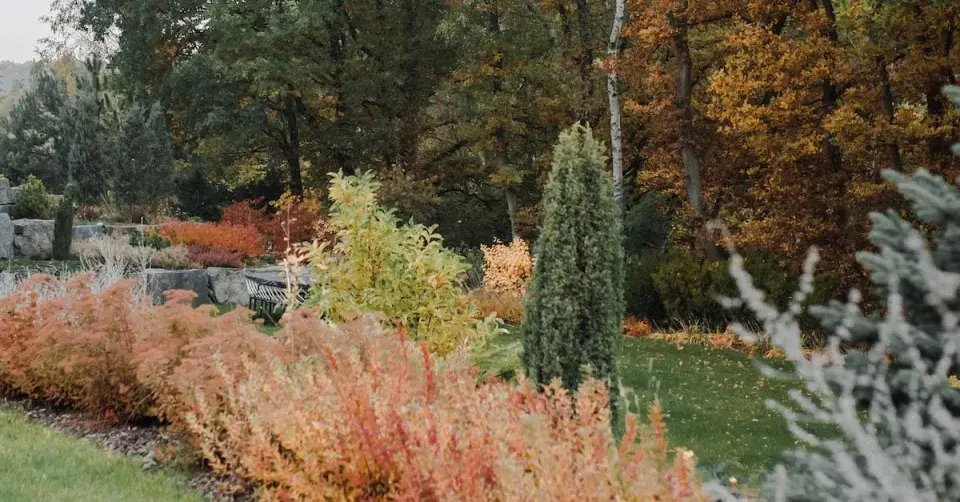 „Výhodou této zahrady je okolní lesík, který ji dodává starší výraz,“ říká Lenka Vyhnálková. Výsadbu tvoří např. tavolníky, rozchodníky, na slunných partiích rostou levandule, ořechokřídlec, ibišek, jalovce, zimostráz a různé jehličnany.
