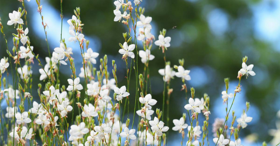 Svíčkovec (Gaura), počeštěně gaura, kvete neúnavně od června do podzimu. Uvítá plné slunce, propustnou půdu a po zakořenění zvládá i přísušky.