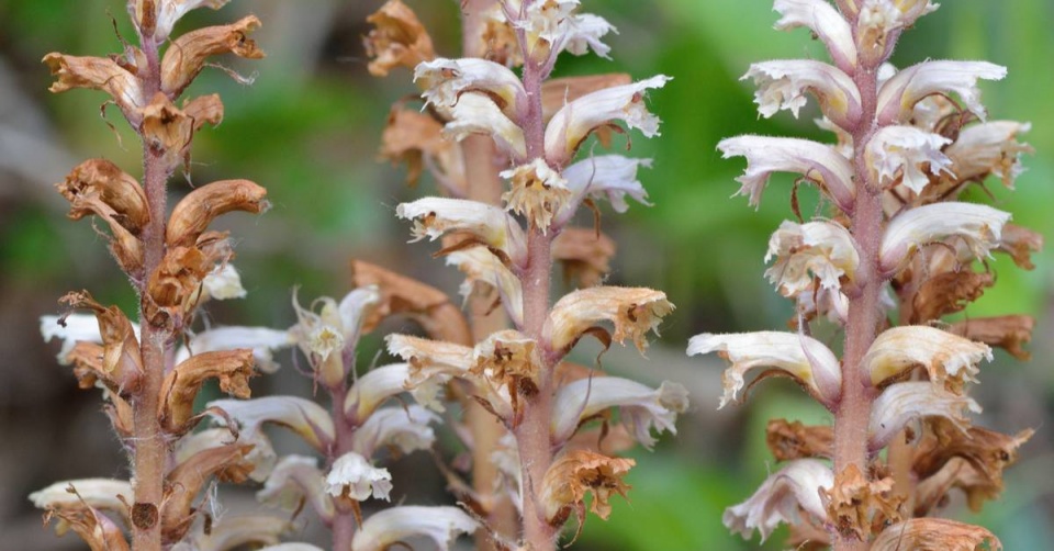 Někdy je možné vidět na kořenech břečťanu parazitickou rostlinu zárazu břečťanovou (Orobanche hederae), která sama nemá chlorofyl.