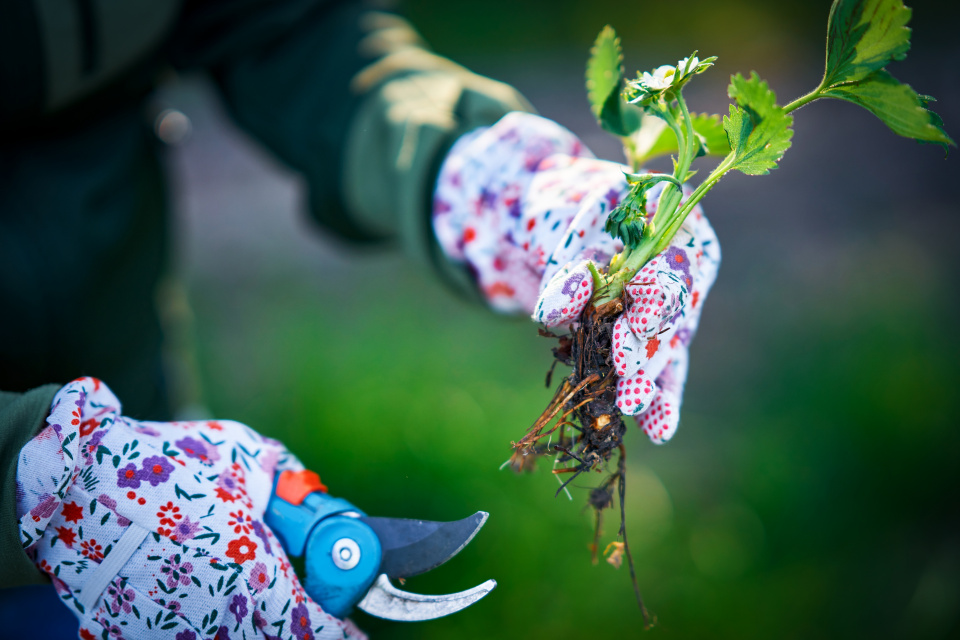 Jahodníky sázejte dostatečně hluboko, ale vždy tak, aby nad zemí zůstalo zelené srdíčko, a po výsadbě je nezapomeňte pořádně zalévat.