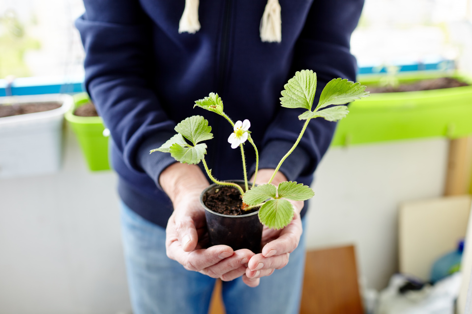 Vlastní sazenice jahod si snadno vypěstujete i sami doma. Stačí nechat zakořenit výhon, který jahodník vypustí v druhé polovině léta.