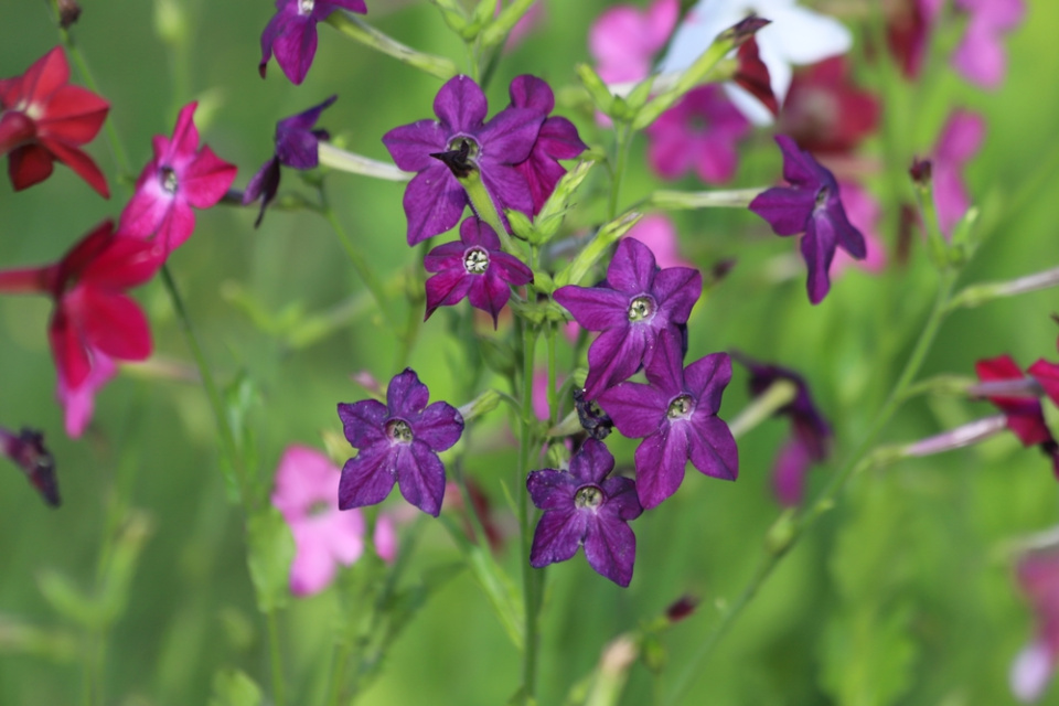 Tabák křídlatý má široce keřovitý tvar a rozvětvené, poněkud lepkavé stonky