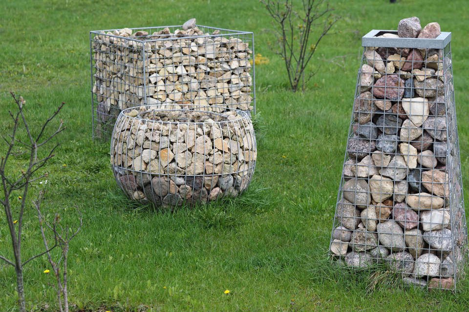 Drátěné koše lze tvarovat do různých tvarů a rozměrů. Vytvořit tak můžete např. kamenné květináče.