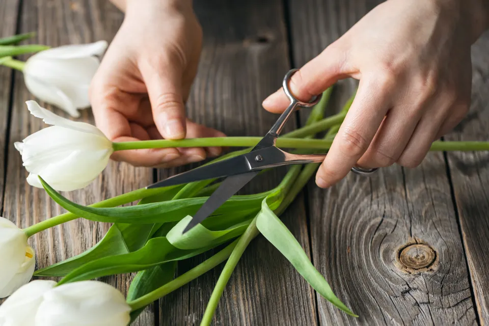 Před vložením do vázy seřízněte stonky asi o dva centimetry. Šikmý řez pomůže, aby květiny lépe nasály vodu a zůstaly déle svěží.