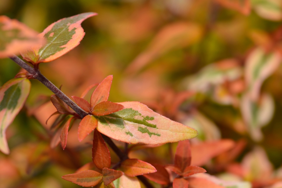 Abélie velkokvětá ´Kaleidoscope´ je nový kultivar se zářivě zbarvenými listy a bílými květy