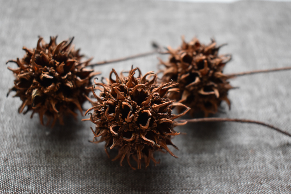 Plody ambroně jsou velmi dekorativní a jsou podobné plodům platanu