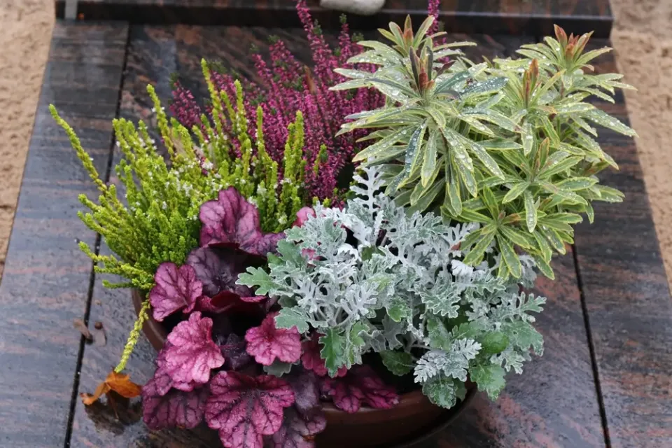 Osázení hrobu rostlinami můžete vyřešit také tak, že podzimní rostliny vysadíte do vhodné nádoby