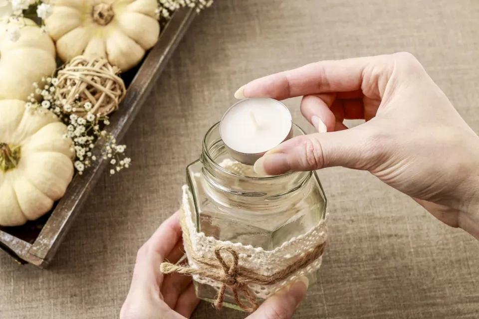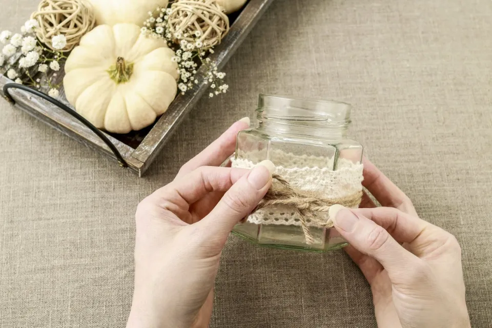 Lucerny ozdobte krajkou a motouzkem a vsaďte do nich svíčku