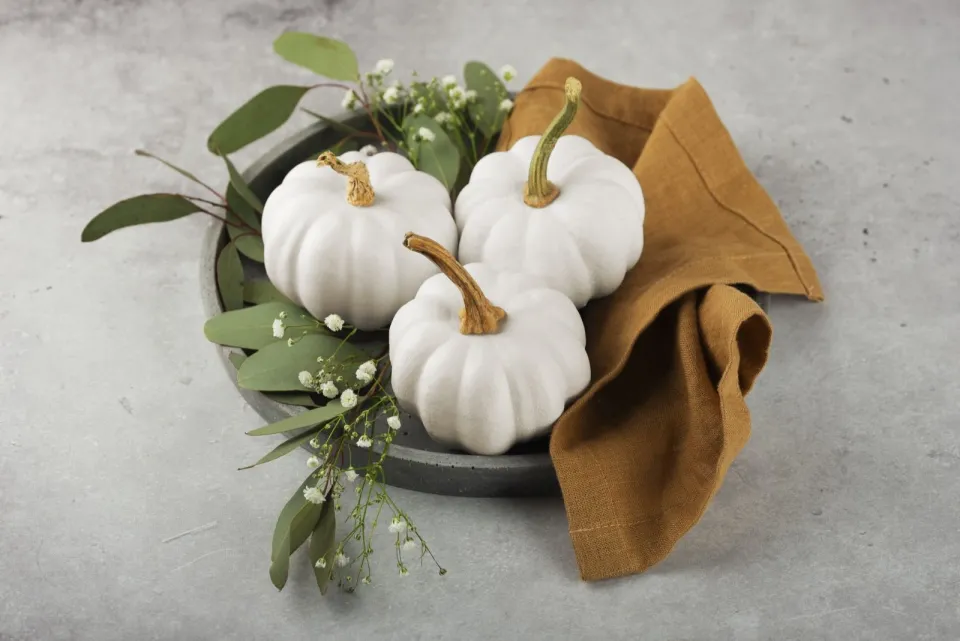 Bílé dýně jsou ozdobou každého stolu