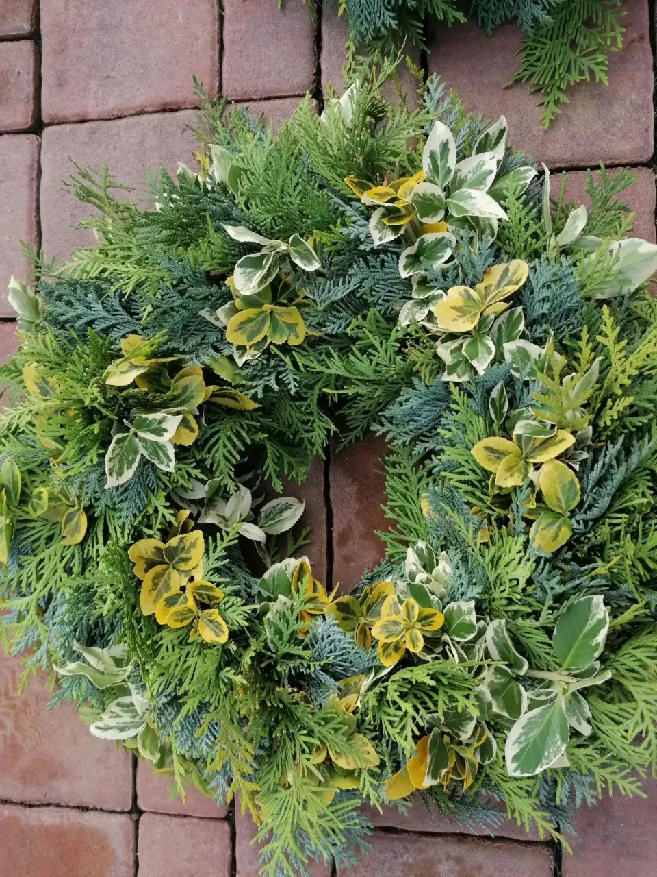 Dušičkový věnec dozdobený listy z loubince