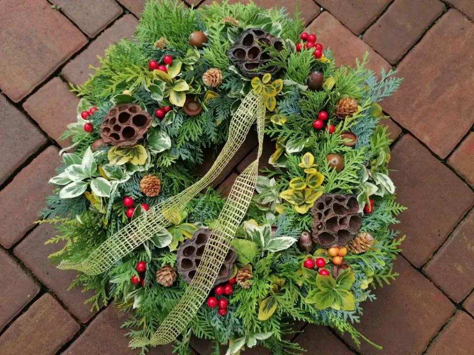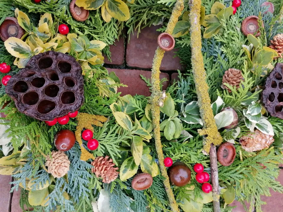 Dušičkový věnec z materiálu, který najdeme na zahradě