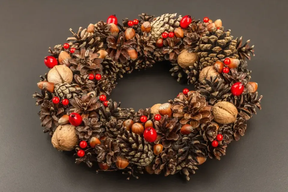 Dušičkový věnec ze šišek a ořechů