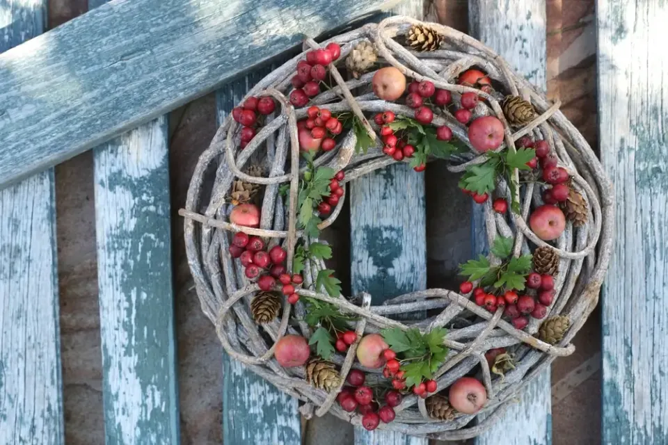 Dušičkový věnec z proutí dozdobený plody
