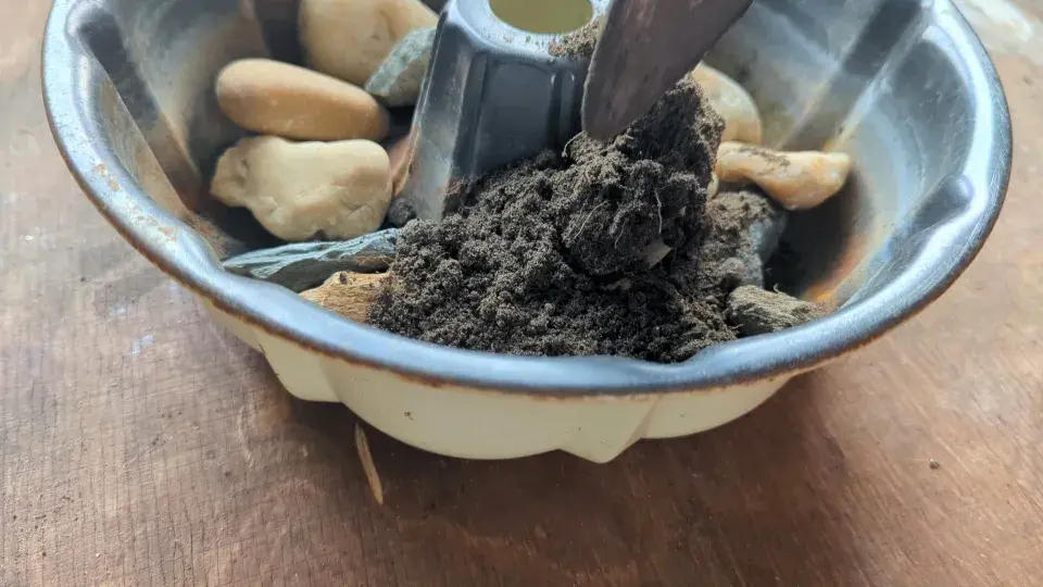 Na dno formy dejte kameny, které poslouží jako drenážní vrstva.