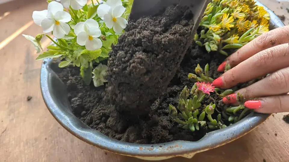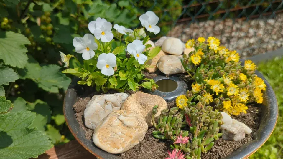 Zasaďte rostliny a můžete přidat také kameny pro zajímavější vzhled.