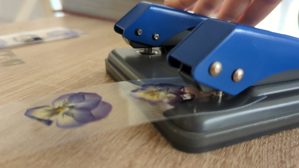 Pokud chcete, do vrchní části záložky vytvořte děrovačkou otvor...