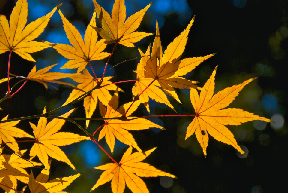 Javor dlanitolistý (Acer palmatum ´Summer Gold´) má na podzim listy jasně žluté či oranžové
