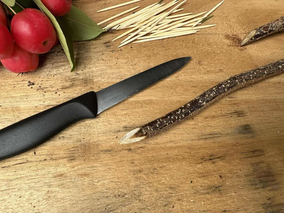 Připravte si asi 30 cm dlouhou, rovnou větvičku o průměru 1-1,5 cm a nožem ji seřízněte na obou koncích do špičky