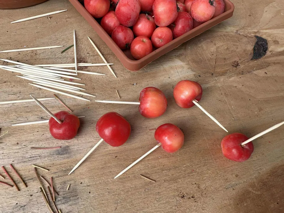 Každé jablíčko napíchněte na oboustranně špičaté párátko. Používejte párátka bambusová, která se jen tak nezlomí