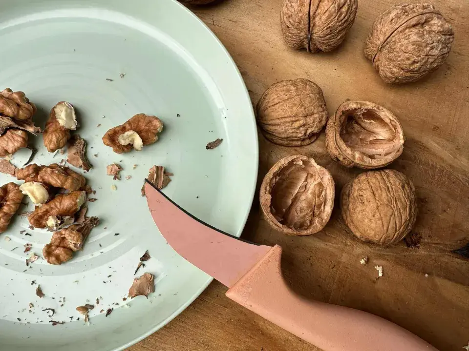 Vlašské ořechy opatrně menším nožíkem rozlouskněte, tak, abyste skořápky nepoškodili a jádra si schovejte třeba na vánoční pečení
