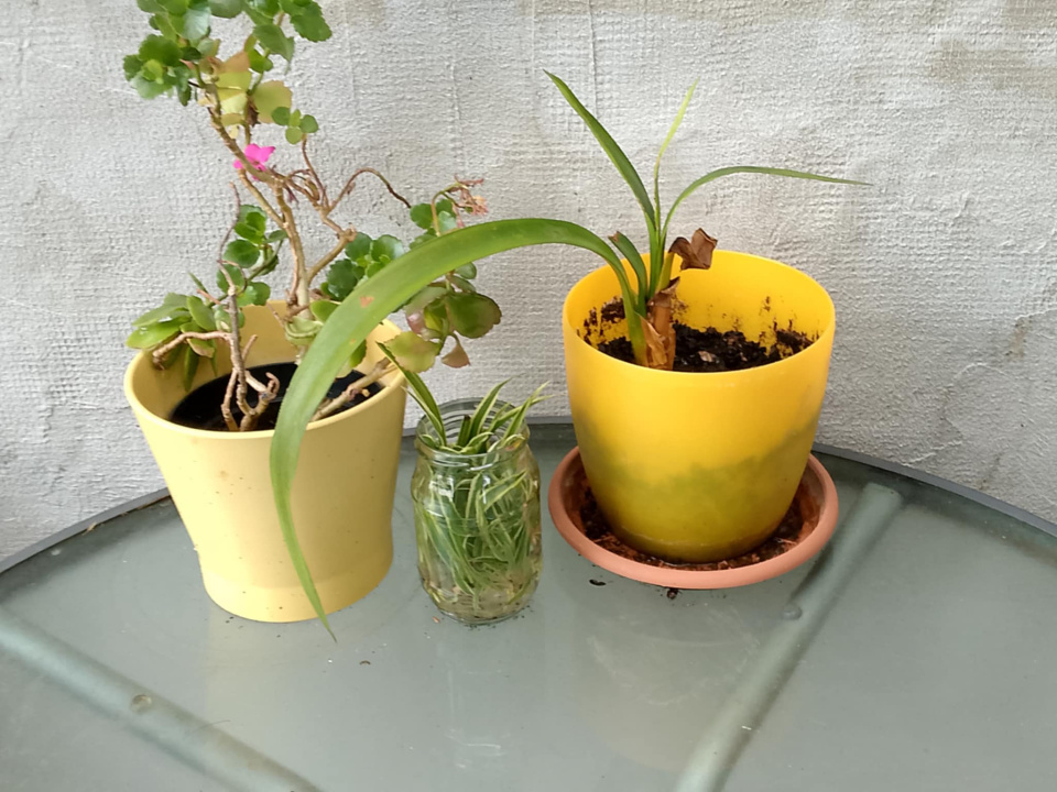 Pokojovky na zahradním stolku