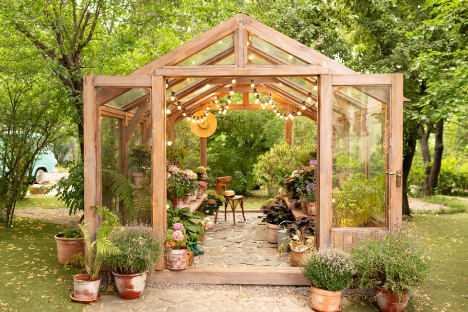 Venkovní altán s rostlinami