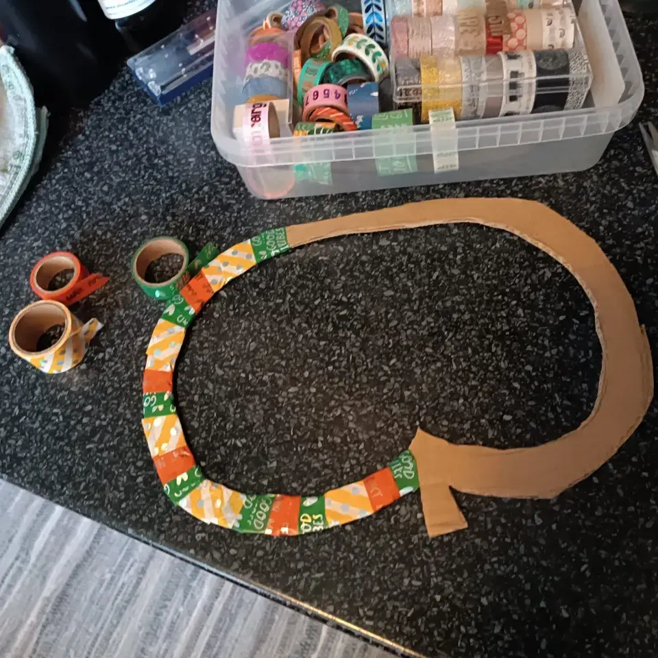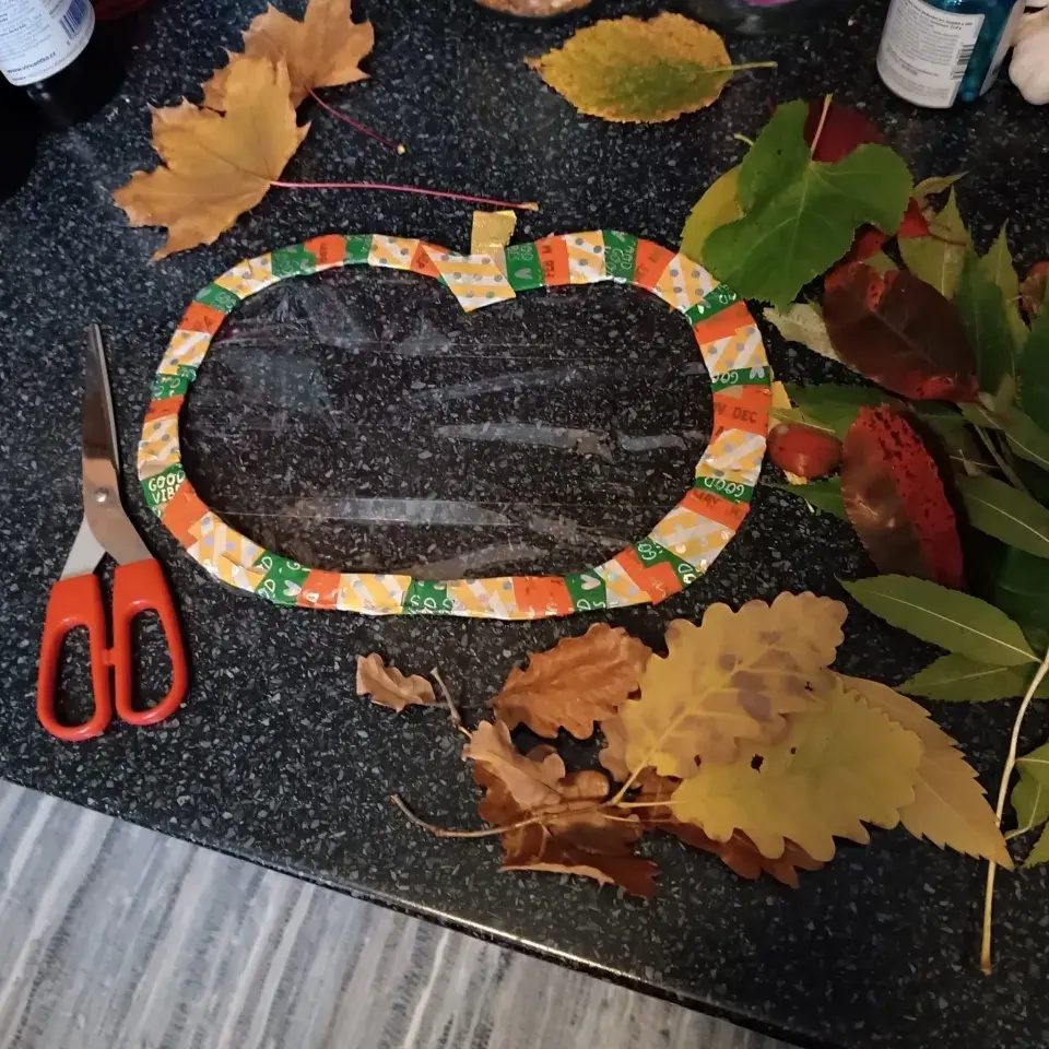 Rám lepenkové dýně omotejte washi páskami (to zvládnou i děti)