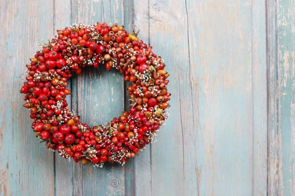 Tento podzimní věnec z šípků rázem promění vaše vstupní dveře