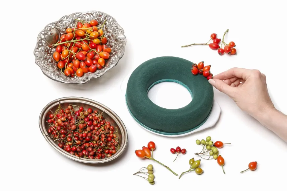 Věnec z šípků vyrobíte tak, že si do nich napícháte párátka